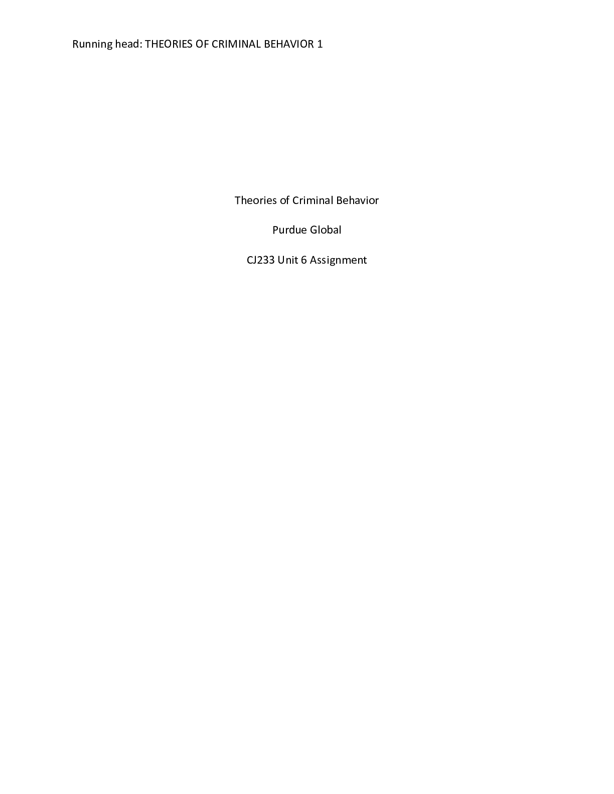 Business > CASE STUDY > CJ233 Unit 6 Assignment.docx Theories of Criminal Behavior Purdue Global CJ233 Unit 6 A