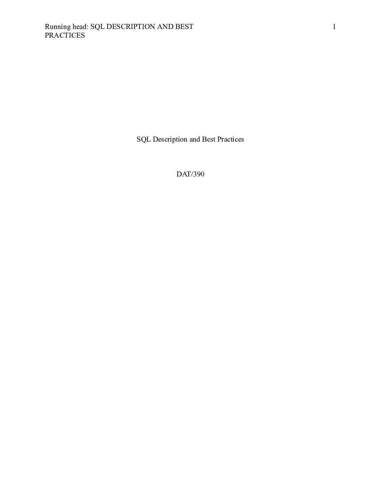 Business > CASE STUDY > SQL Description and Best Practices.docx SQL Description and Best Practices DAT/390 S
