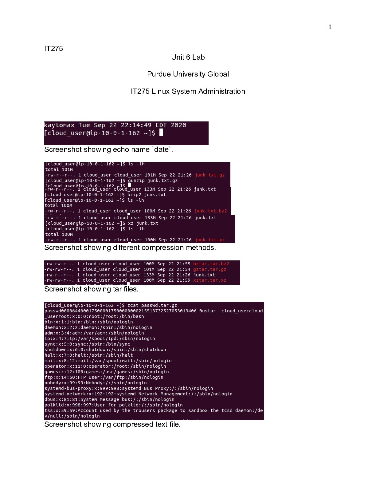 Business > CASE STUDY > IT275 Unit 4 Lab.docx IT275 Unit 6 Lab Purdue University Global IT275 Linux System Ad