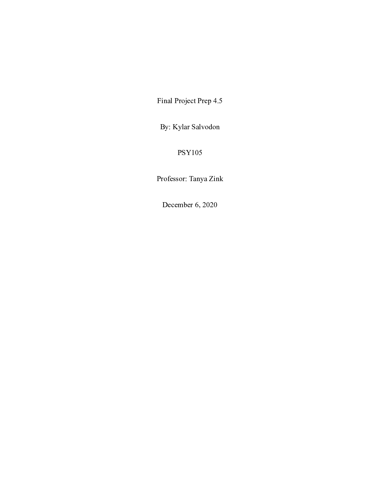 Business > CASE STUDY > _Final_Project_Prep_4.docx Final Project Prep 4.5 By: Kylar Salvodon PSY105 Professo