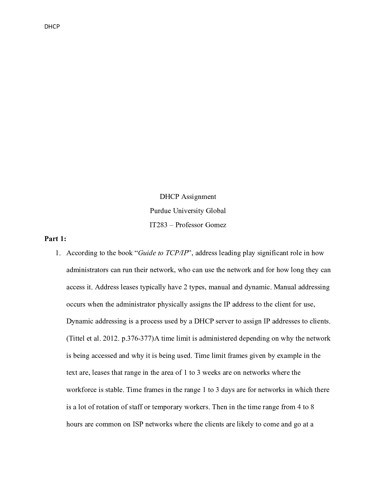 Business > CASE STUDY > IT283 Unit 6 Assignment.docx DHCP Assignment Purdue University Global IT283 – Pro