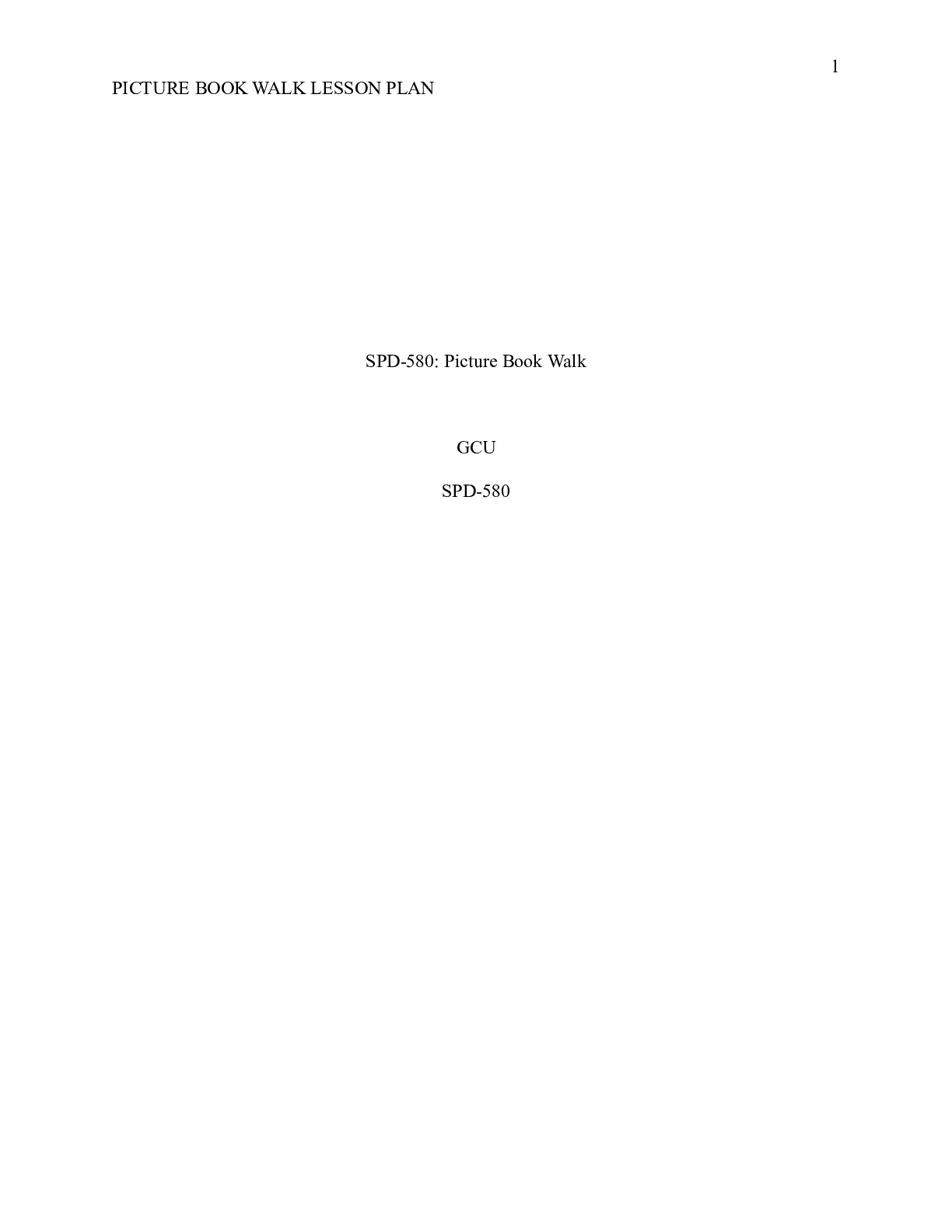 Business > CASE STUDY > SPD_580_Picture_Book.docx SPD-580: Picture Book Walk GCU SPD-580 Section 1: Lesson