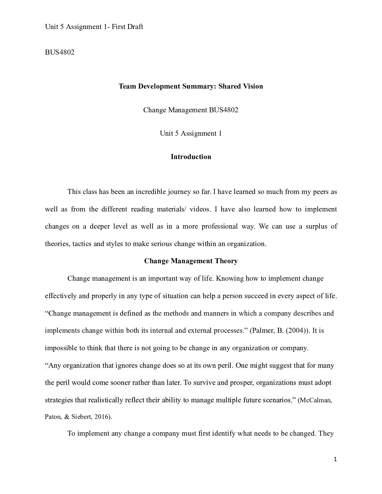 Business > CASE STUDY > Unit 5 Assignment 1 First Draft .docx BUS4802 Team Development Summary: Shared Vision