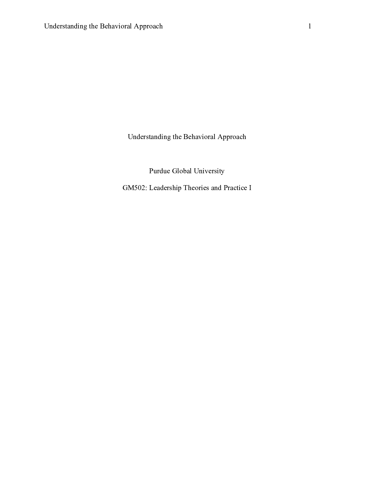 Business > CASE STUDY > GM 502 Unit 2.edited.docx Understanding the Behavioral Approach Purdue Global Universi