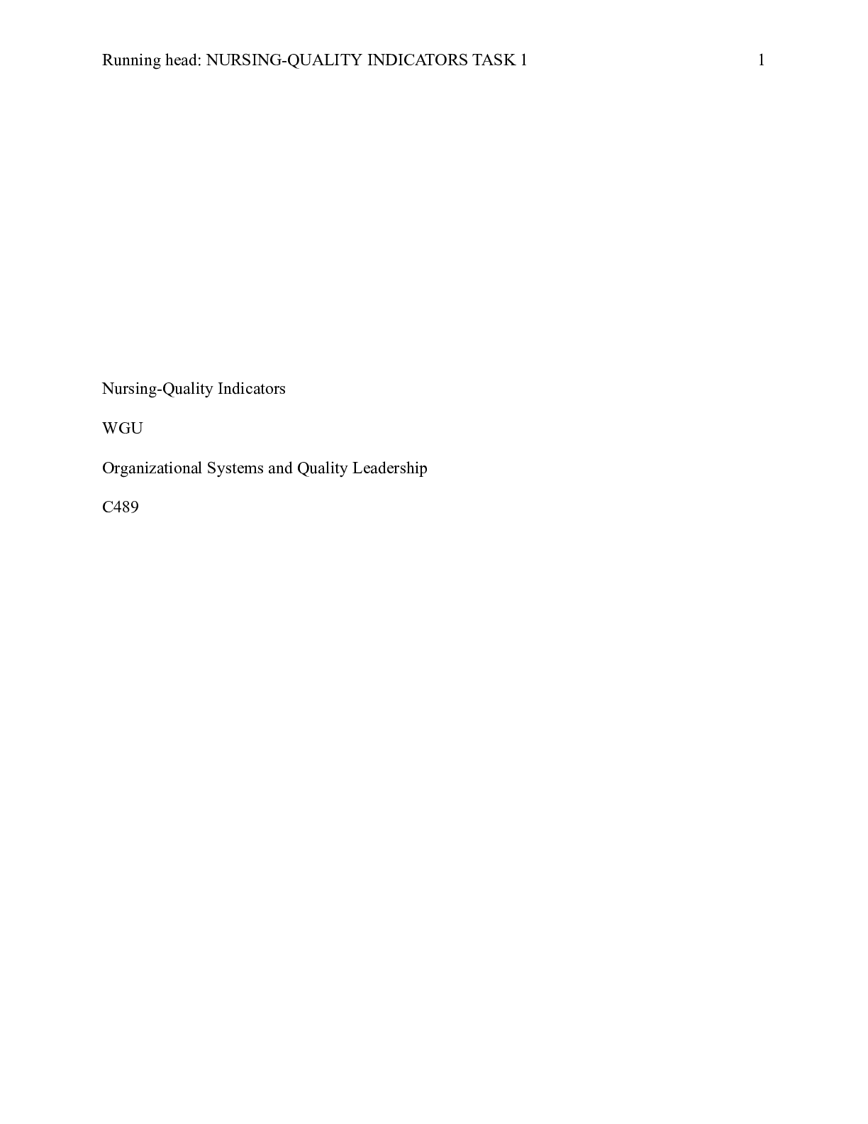 Business > CASE STUDY > Nursing-QualityIndicators Task 1.docx Nursing-Quality Indicators WGU Organizational S
