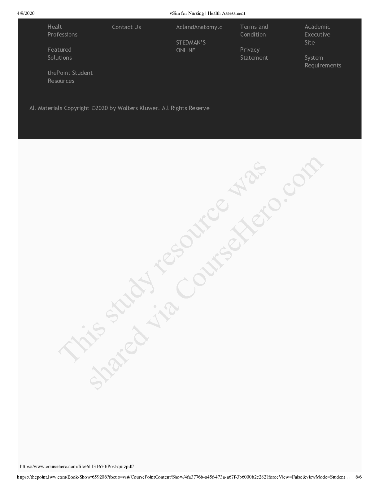 *NURSING > vSim For Nursing > VernonWatkins Pre-Post Sim Quiz | All Answers are Correct