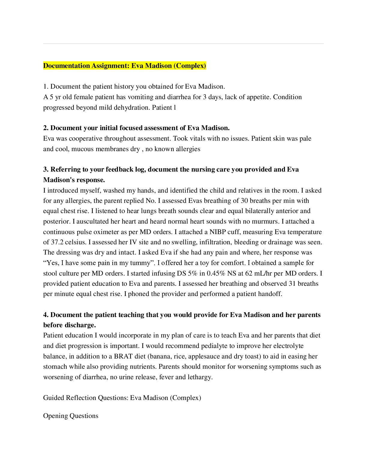 *NURSING > vSim For Nursing > Documentation Assignment: Eva Madison (Complex)| Eva Madison VSIM