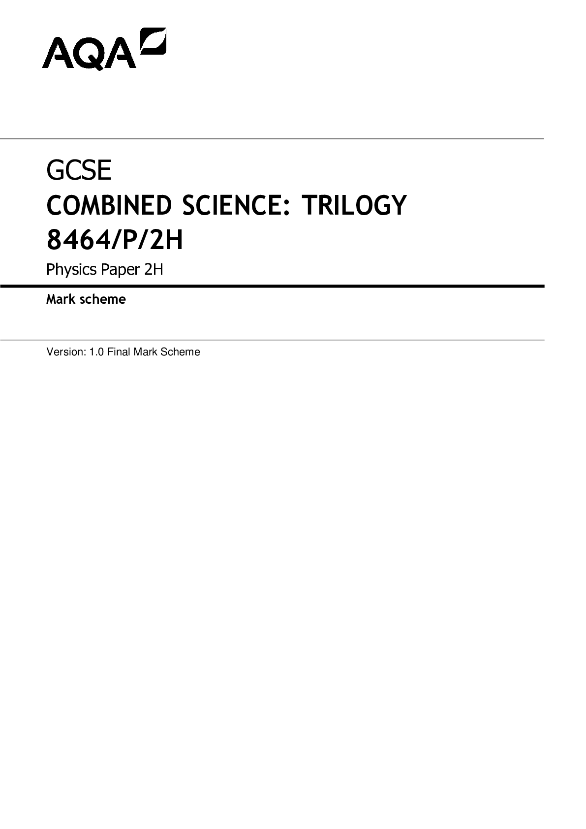 Biology > AQA > GCSE COMBINED SCIENCE: TRILOGY 8464/B/2H
