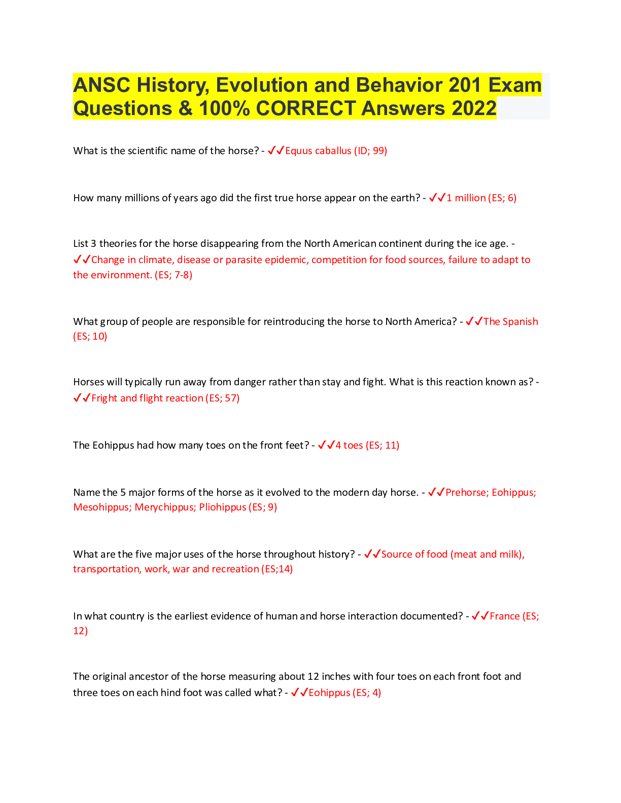 History > AQA > ANSC History, Evolution and Behavior 201 Exam Questions & 100% CORRECT Answers 2022