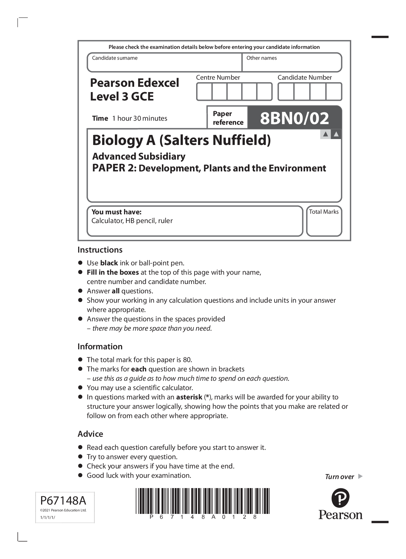OCR 2024 GCSE Biology A Gateway J247/01: Paper 1 (Foundation Tier) Question paper and Mark scheme Merged