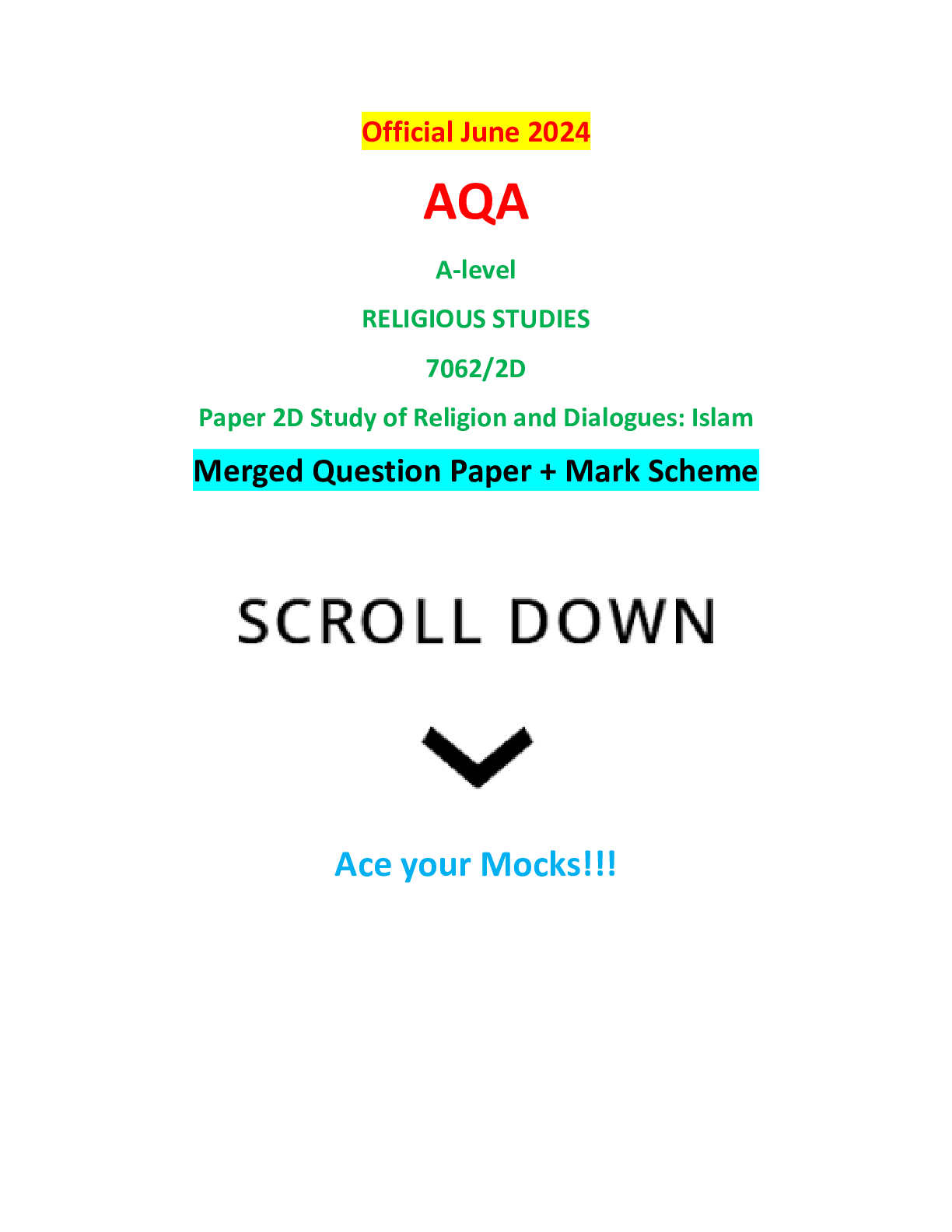 AQA > AQA > Official June 2024 AQA A-level RELIGIOUS STUDIES 7062/2D Paper 2D Study of Religion and Dialogues: Islam Merged Question Paper + Mark Scheme