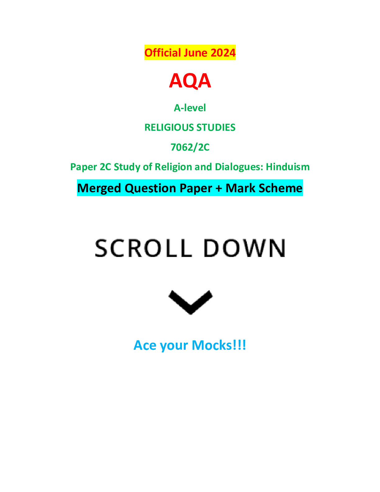 AQA > AQA > Official June 2024 AQA A-level RELIGIOUS STUDIES 7062/2C Paper 2C Study of Religion and Dialogues: Hinduism Merged Question Paper + Mark Scheme