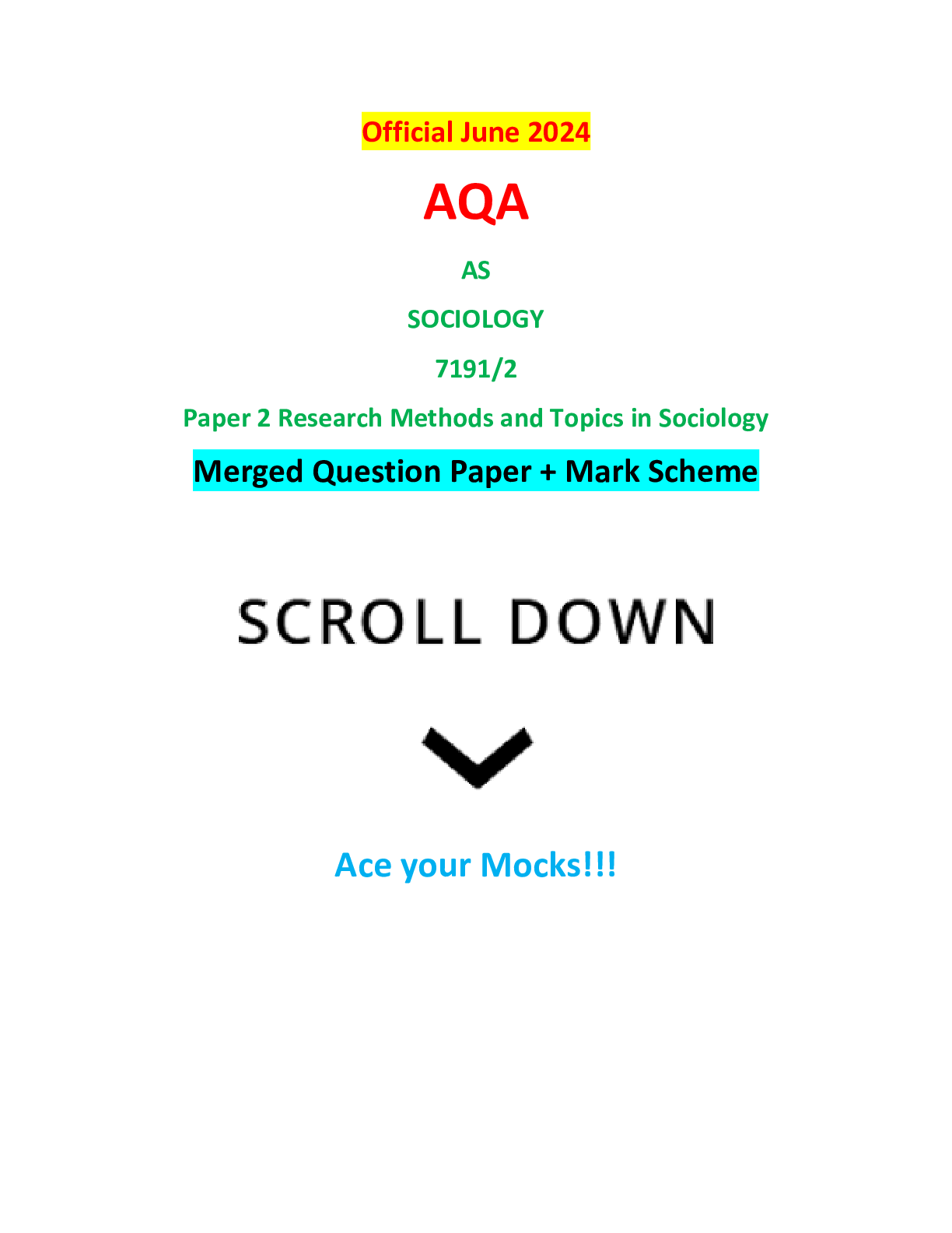 AQA > AQA > Official June 2024 AQA AS SOCIOLOGY 7191/2 Paper 2 Research Methods and Topics in Sociology Merged Question Paper + Mark Scheme
