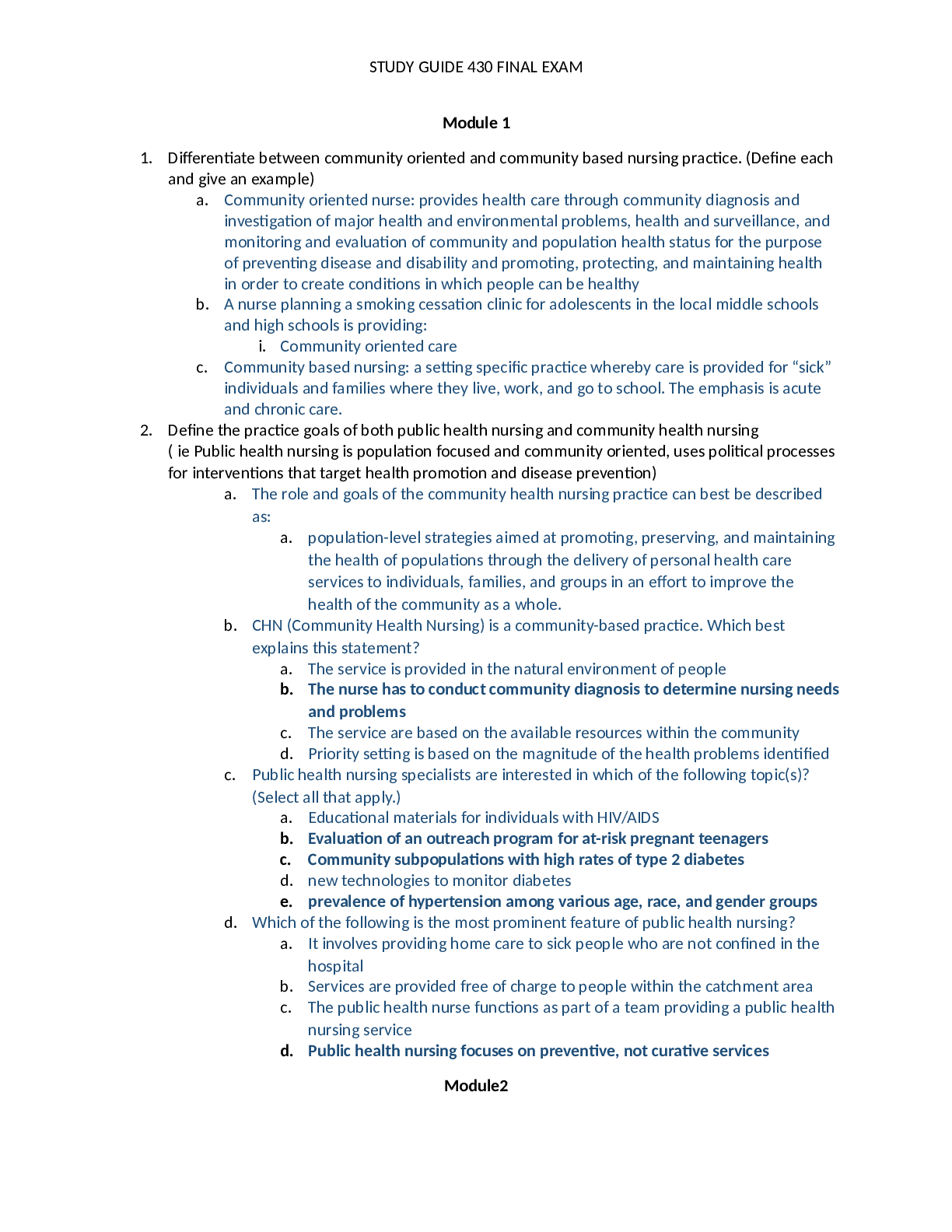 Health Care > AQA QUESTION and MARK SCHEMES > STUDY GUIDE 430 FINAL EXAM