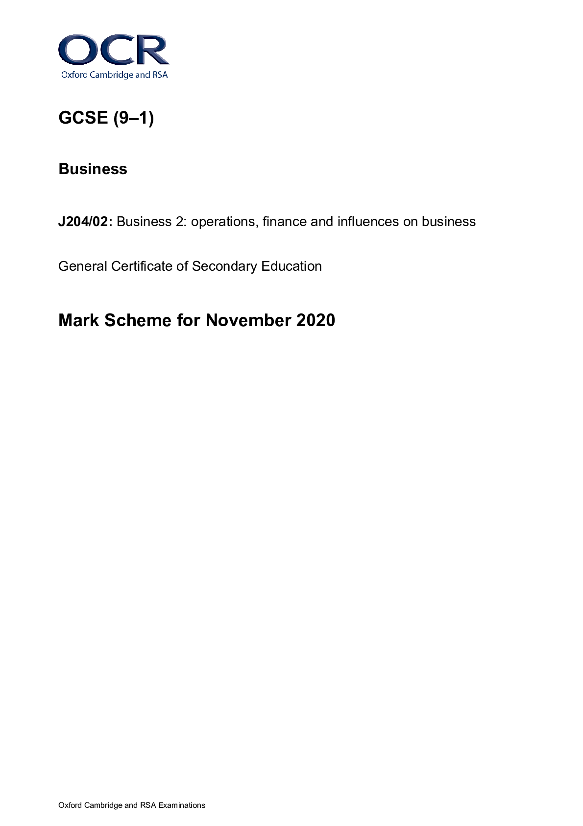 Business > Higher Education > GCSE (9-1) Business_J204/02 Mark Scheme Nov 2020 | Business 2: Operations, Finance and Influences on Business