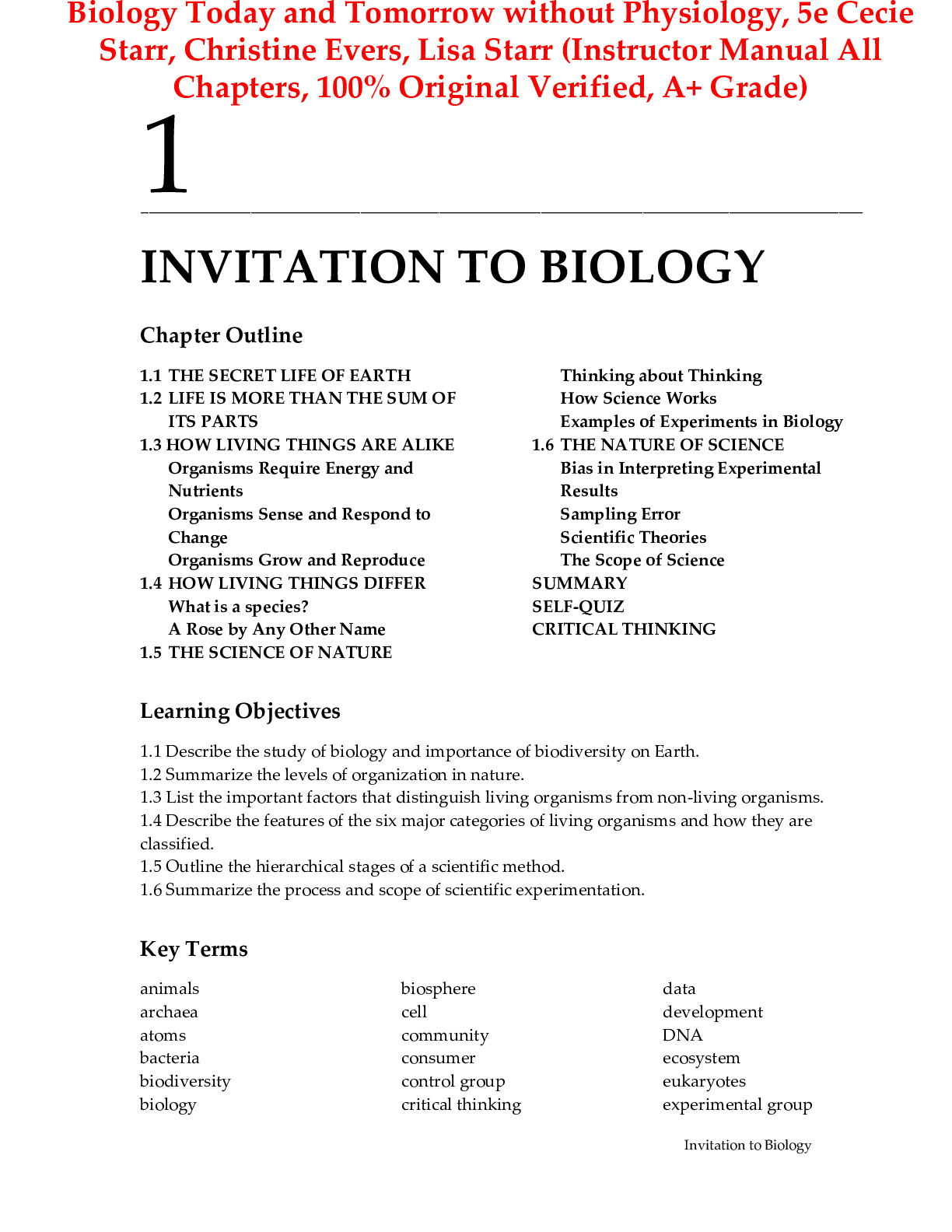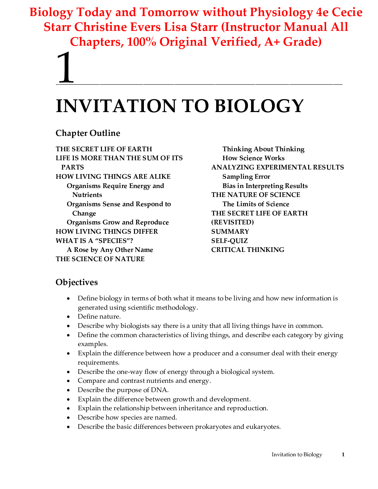 Biology > INSTRUCTOR MANUALS > Instructor's Manual for Biology Today and Tomorrow without Physiology 4th Edition By Cecie Starr Christine Evers Lisa Starr (All Chapters, 100% Original Verified, A+ Grade)