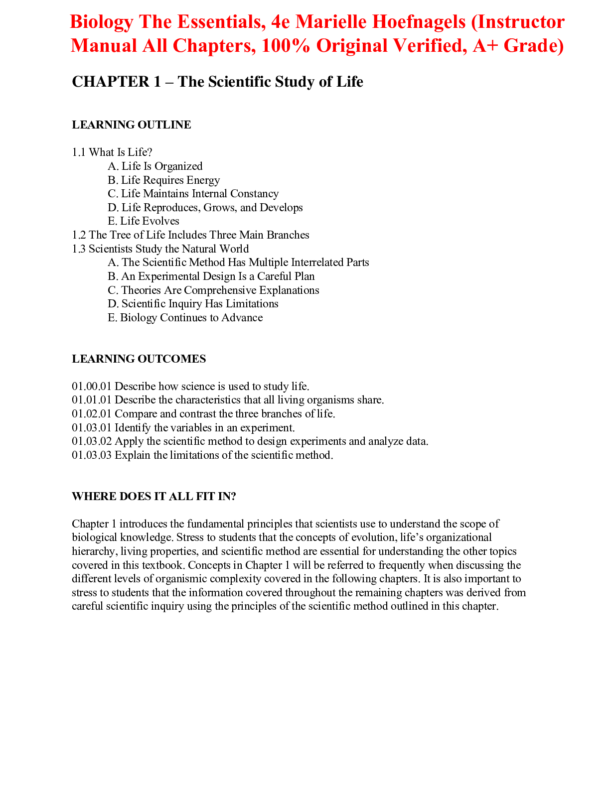 Biology > INSTRUCTOR MANUALS > Instructor's Manual for Biology The Essentials 4th Edition By Marielle Hoefnagels (All Chapters, 100% Original Verified, A+ Grade)