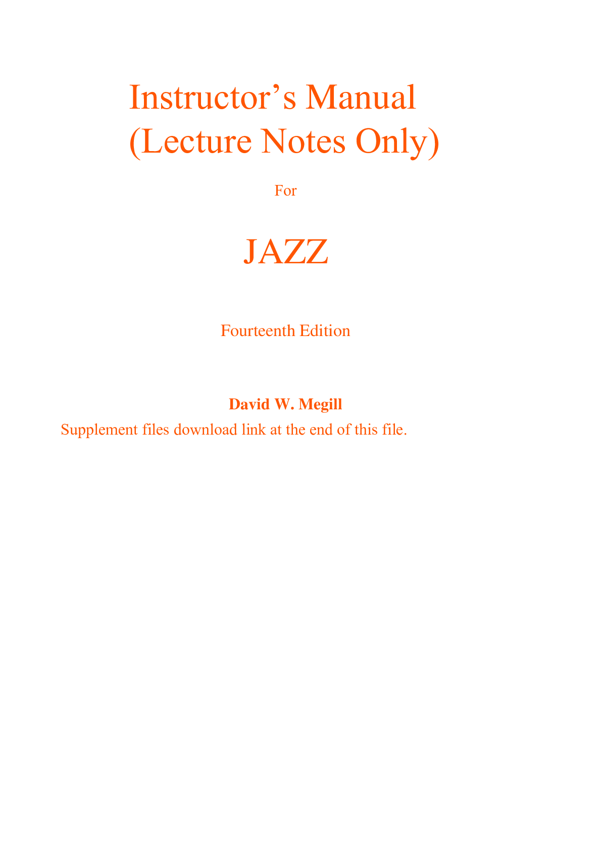 Education > INSTRUCTOR MANUALS > Instructor Manual For Jazz 14th Edition By David Megill, Paul Tanner (All Chapters, 100% Original Verified, A+ Grade)