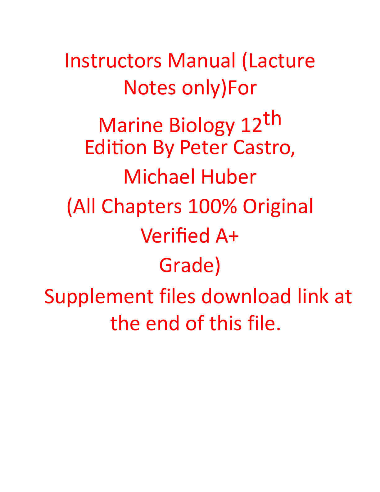 Education > INSTRUCTOR MANUALS > Instructor Manual For Marine Biology 12th Edition By Peter Castro, Michael Huber (All Chapters, 100% Original Verified, A+ Grade)