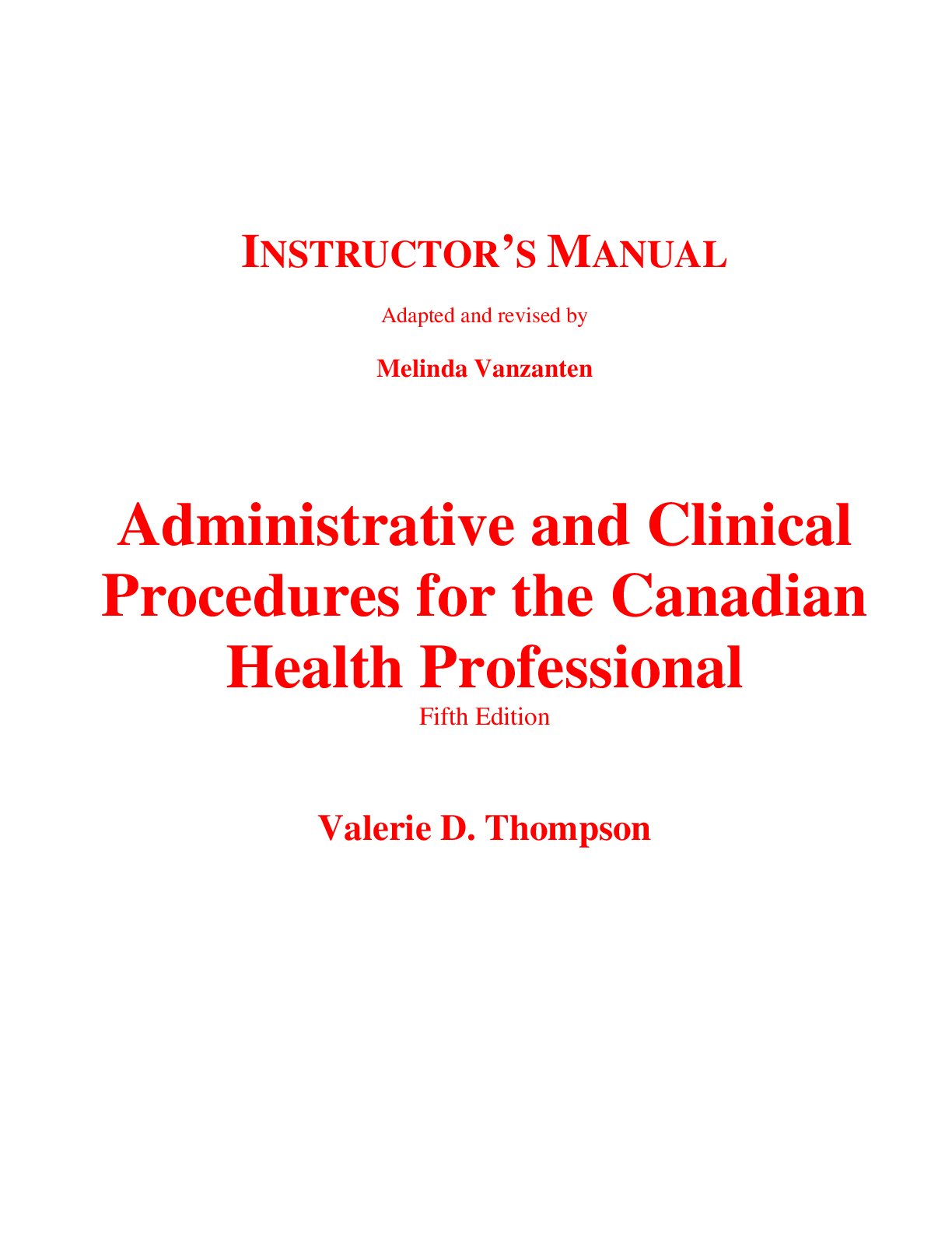 Business > INSTRUCTOR MANUALS > Instructor Manual For Administrative and Clinical Procedures for the Canadian Health Professional 5th Edition By Valerie Thompson
