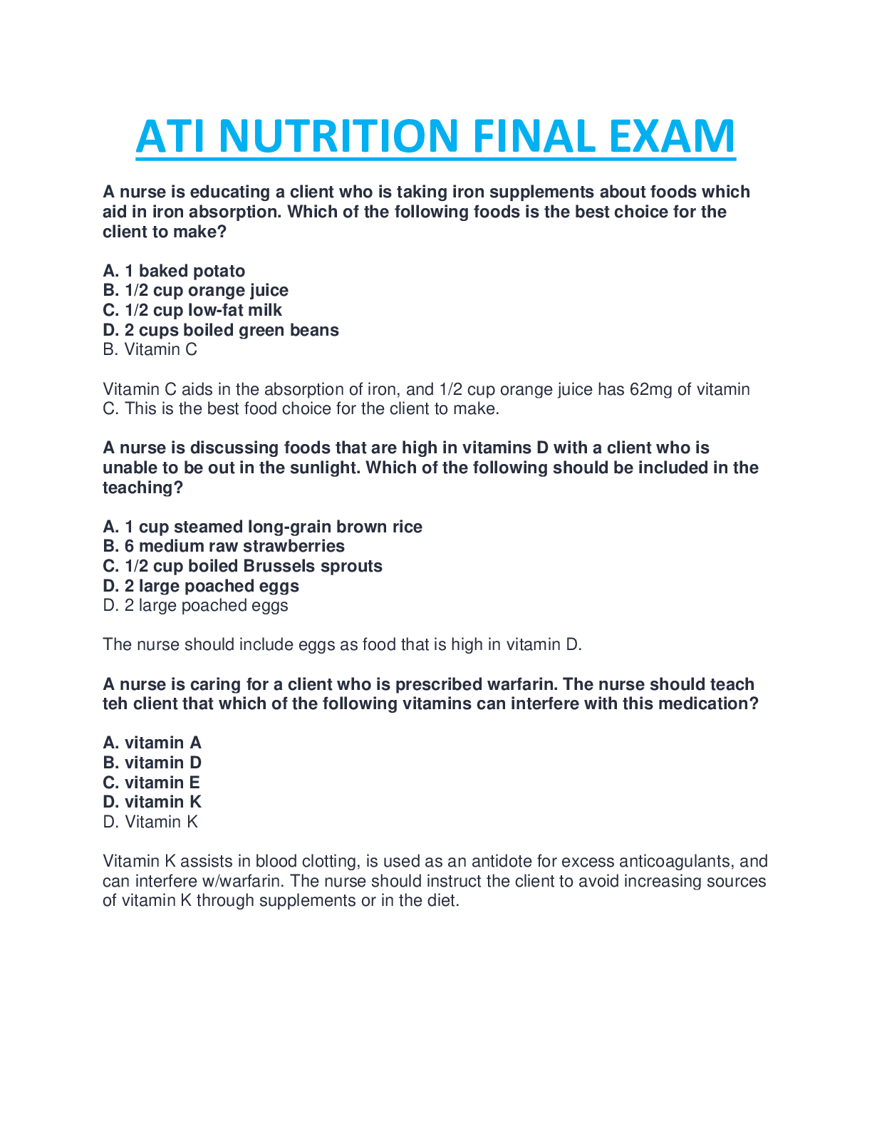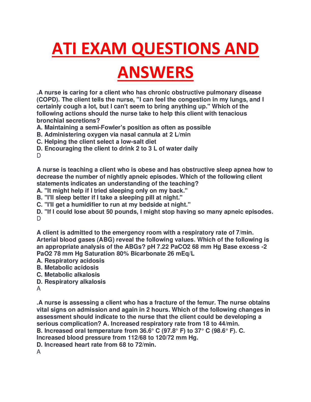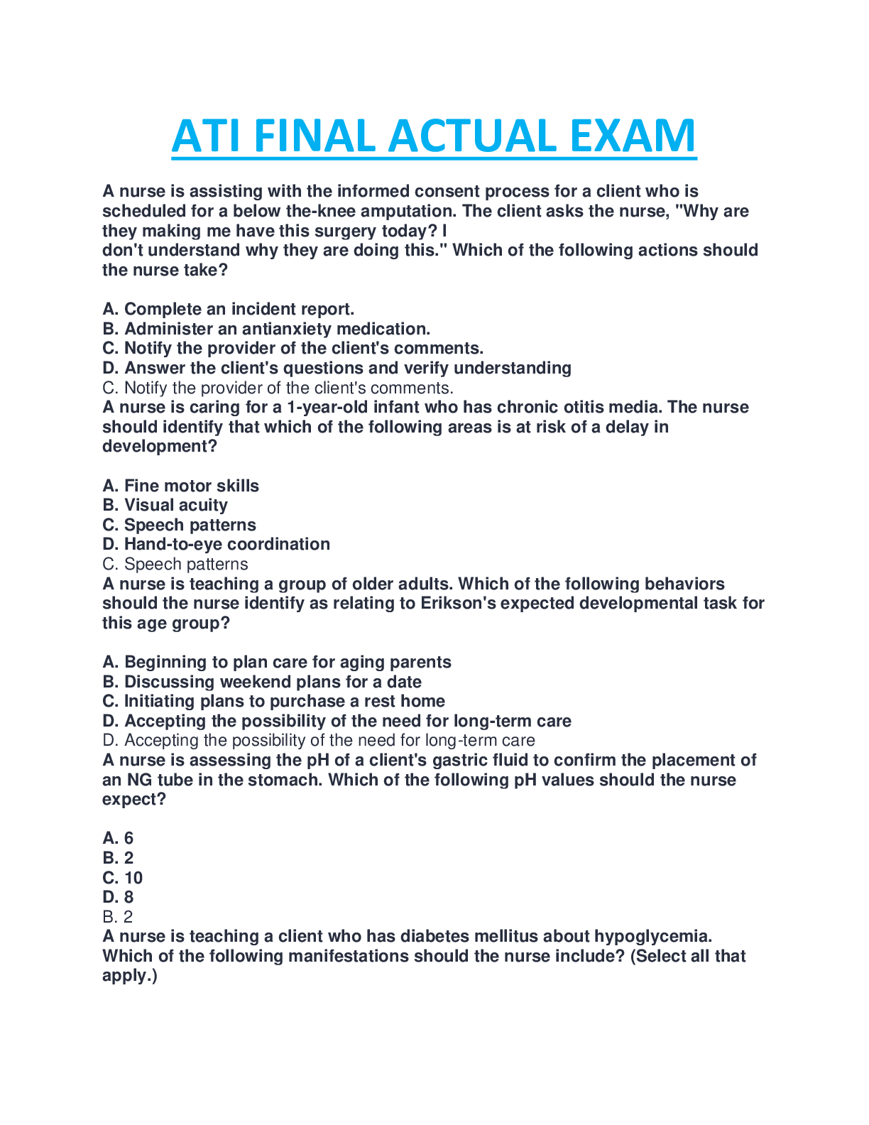 *NURSING > ATI > ATI final all practice questions and answers 2023