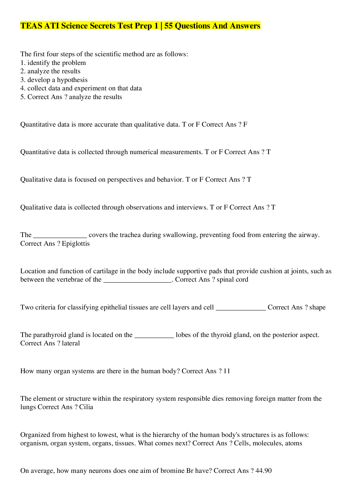 Health Care > Other Study Resources. > SCIENCE 1005- ATI TEAS A&P SCIENCE-with 100% verified answers-2022