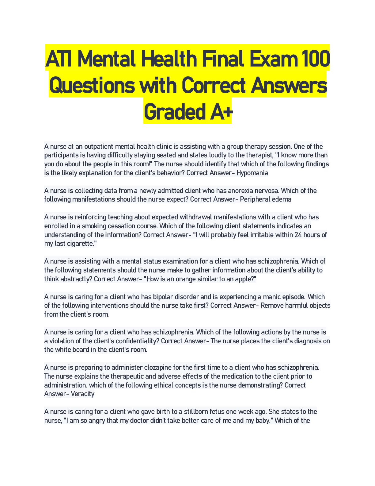 ATI PRACTICE TEST ( UPDATED 2024 ) COMPLETE QUESTIONS & ANSWERS (SOLVED) 100% CORRECT