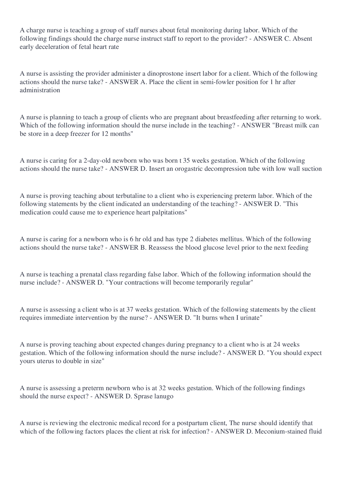 Health Care > Other Study Resources. > ATI Maternal Newborn Proctored Exam 2022 /2023 with complete solutions