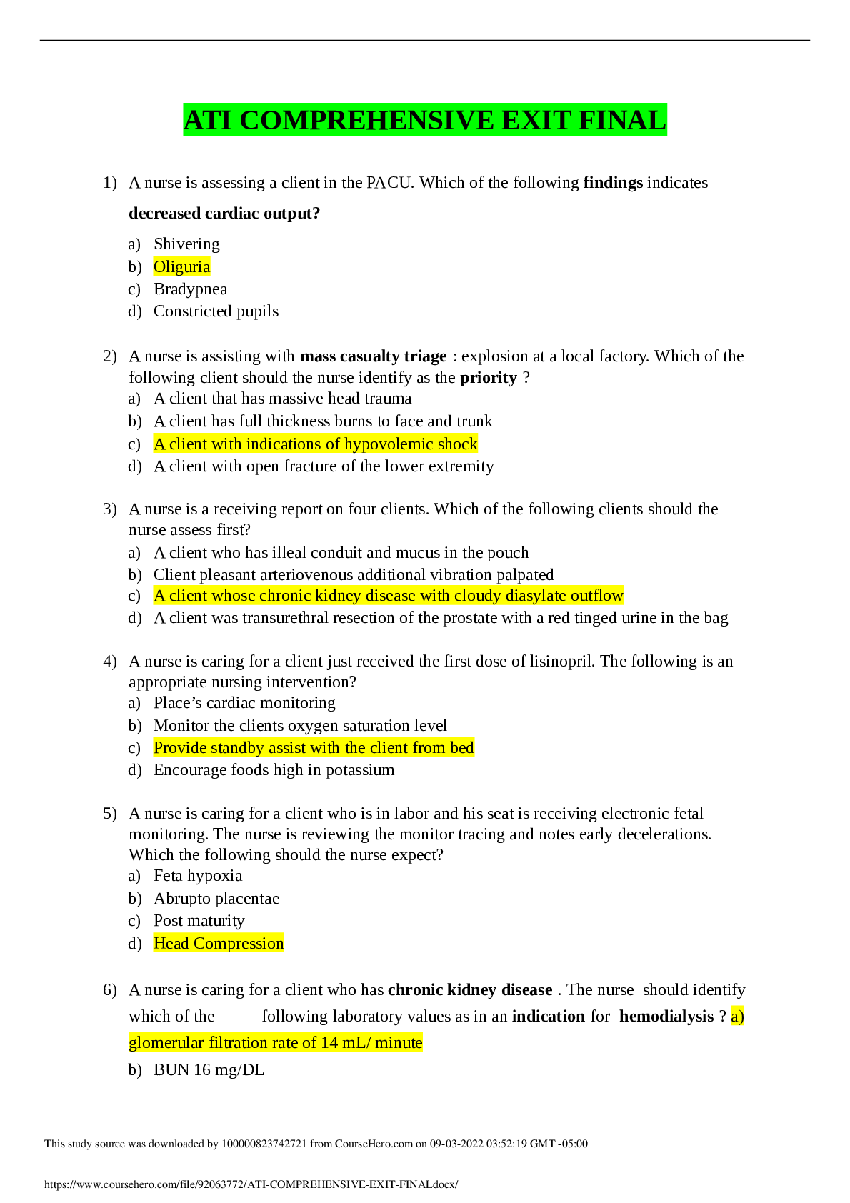 *NURSING > Other Study Resources. > ATI COMPREHENSIVE EXIT FINAL