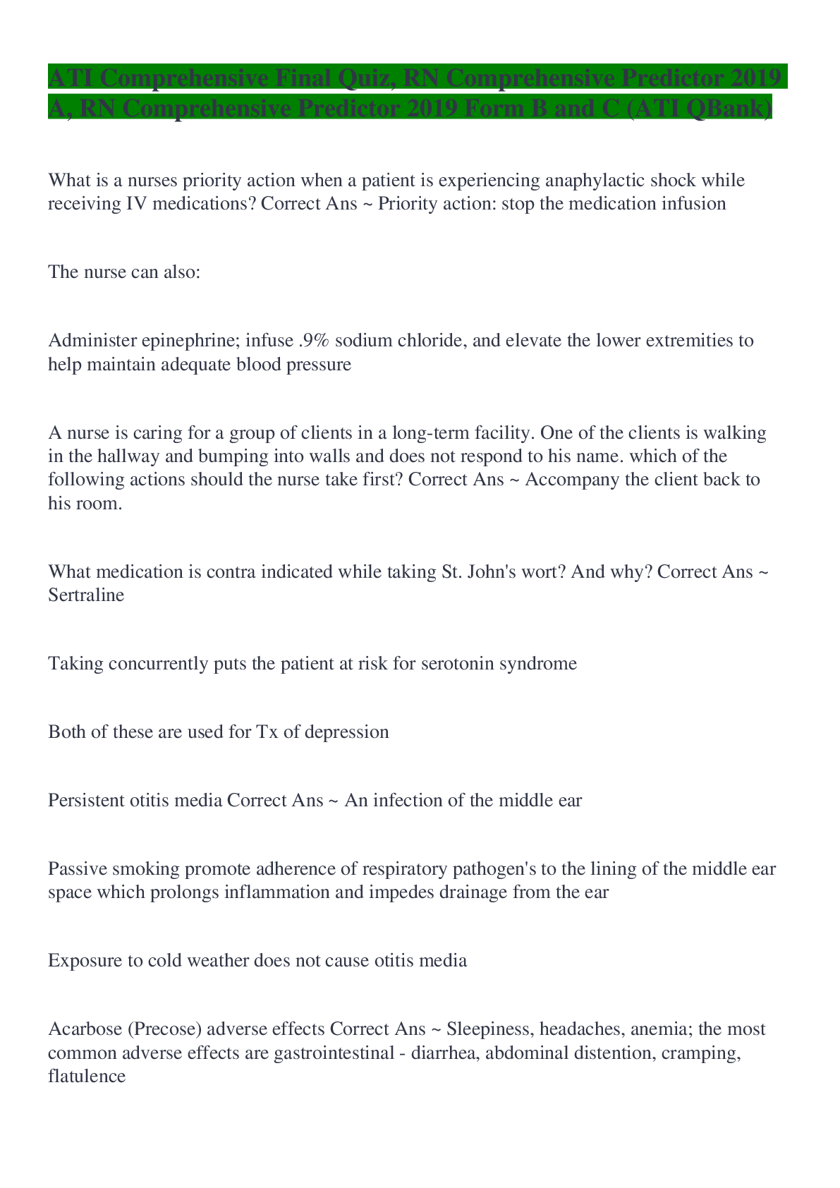 *NURSING > Other Study Resources. > ATI Comprehensive Final Quiz, RN Comprehensive Predictor 2019 A, RN Comprehensive Predictor 2019 Form B and C (ATI QBank)