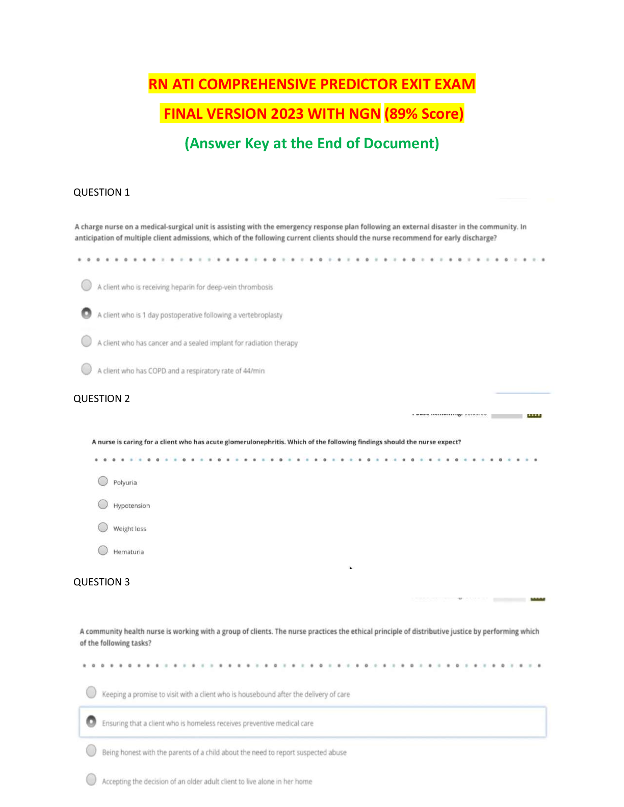 *NURSING > ATI > ATI COMPREHENSIVE EXIT FINAL EXAM (100) QUESTIONS AND ANSWERS 2024/2025