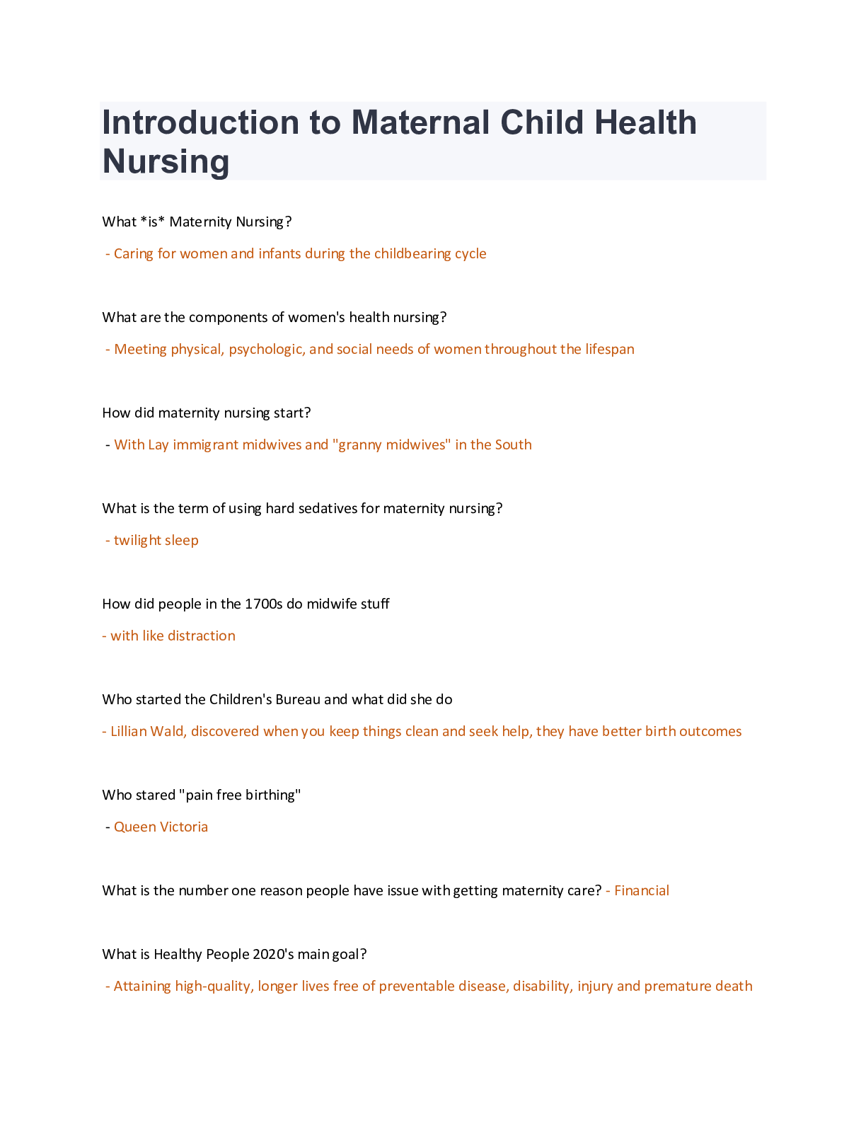 *NURSING > ATI > Introduction to Maternal Child Health Nursing
