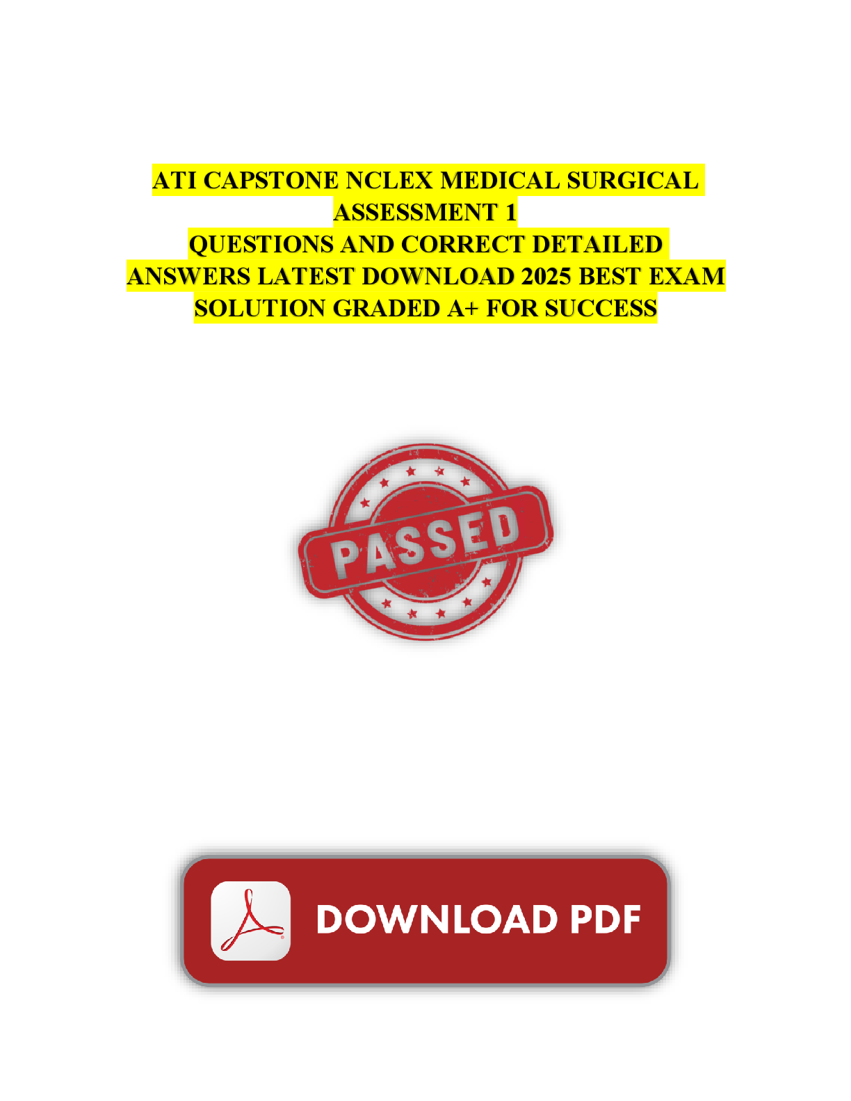 *NURSING > ATI > ATI CAPSTONE NCLEX MEDICAL SURGICAL ASSESSMENT 1 QUESTIONS AND CORRECT DETAILED ANSWERS LATEST || DOWNLOAD 2025 BEST EXAM SOLUTION GRADED A+ FOR SUCCESS