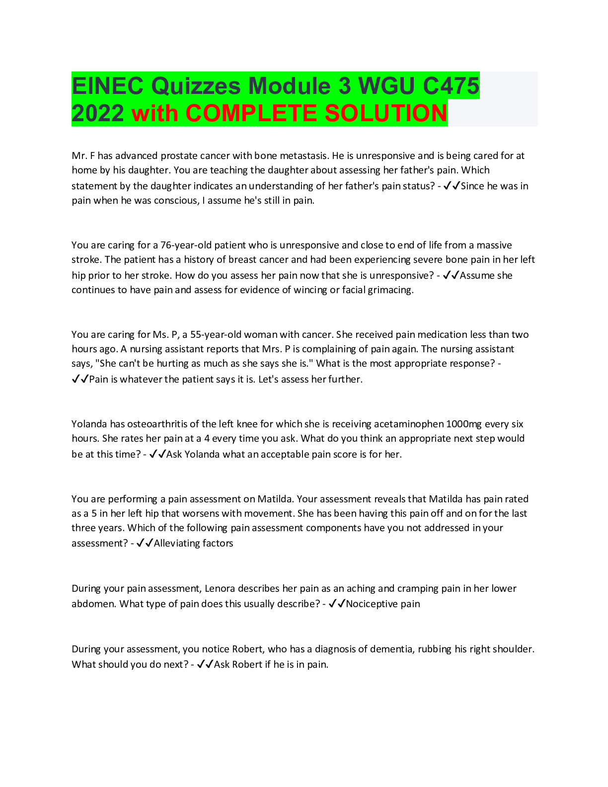 *NURSING > ATI > ElNEC Quizzes Module 3 WGU C475 2022 with COMPLETE SOLUTIO