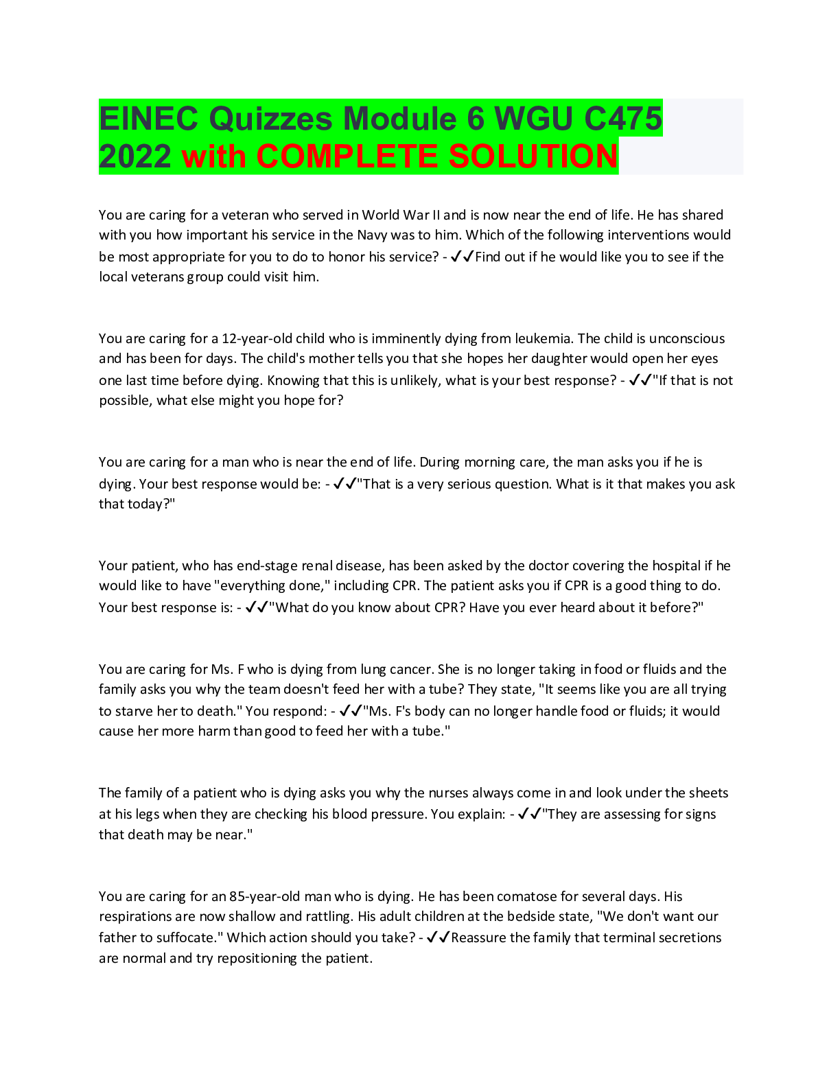 *NURSING > ATI > ElNEC Quizzes Module 6 WGU C475 2022 with COMPLETE SOLUTIO