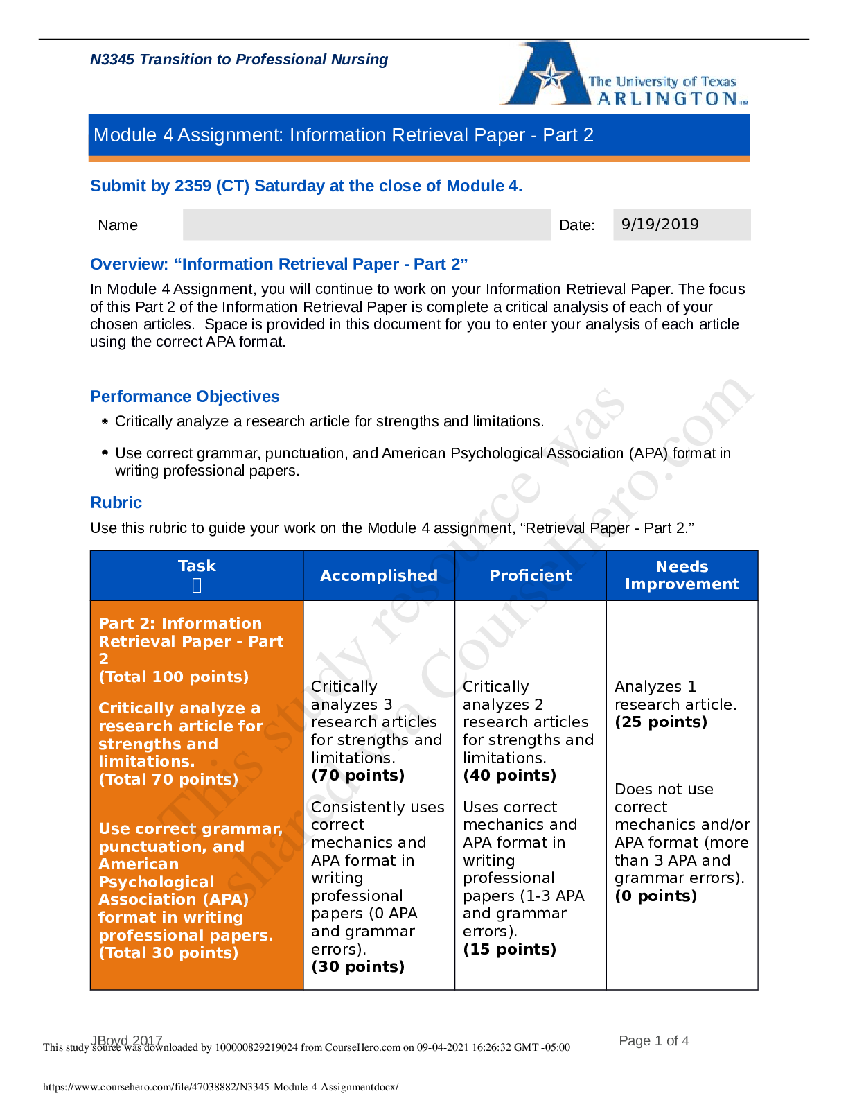 *NURSING > Class Notes > N3345 Module 4 Assignment.docx revised edition 2019/2021