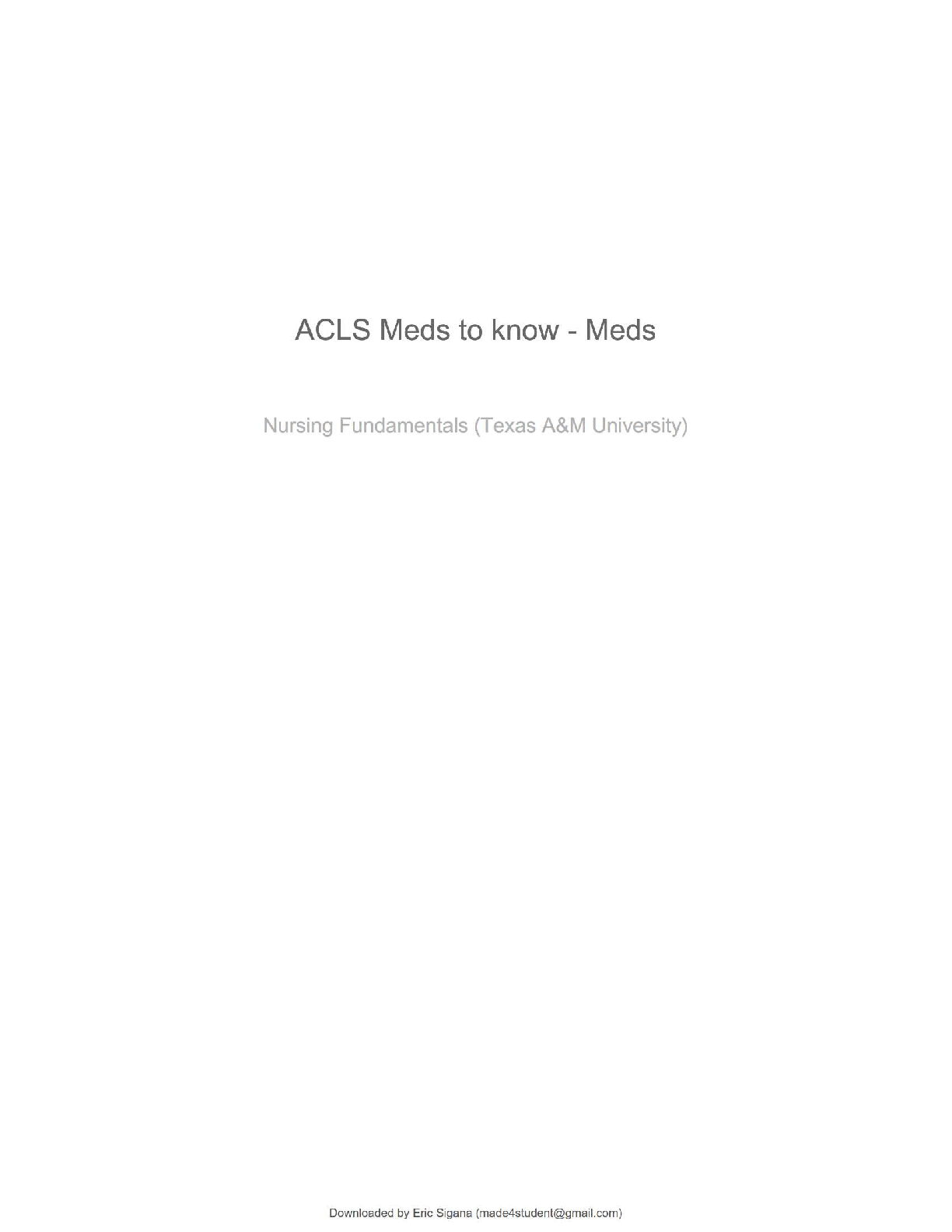 *NURSING > Class Notes > NUR-ACLS / Advanced Cardiac Life Support (Latest 2025): ACLS Medications to Know | Drug Classifications, Uses, and Verified Correct Answers | 100% Accurate | Grade A