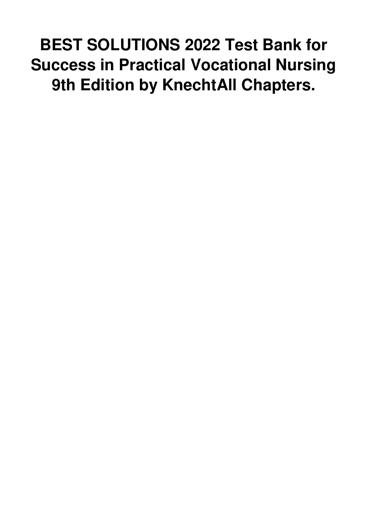 Health Care > ANSWERS AND COMMENTARIES > BEST SOLUTIONS 2022 Test Bank for Success in Practical Vocational Nursing 9th Edition by Knecht All Chapters.