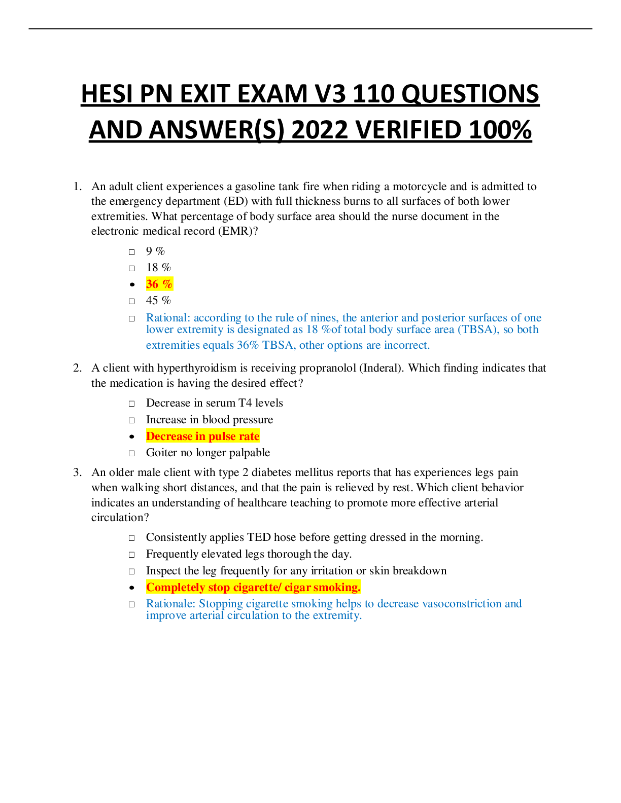 NUR246 / Nursing 246 (Latest 2025): HESI Practice Exam | Actual Questions and Verified Correct Answers | 100% Accurate | Grade A
