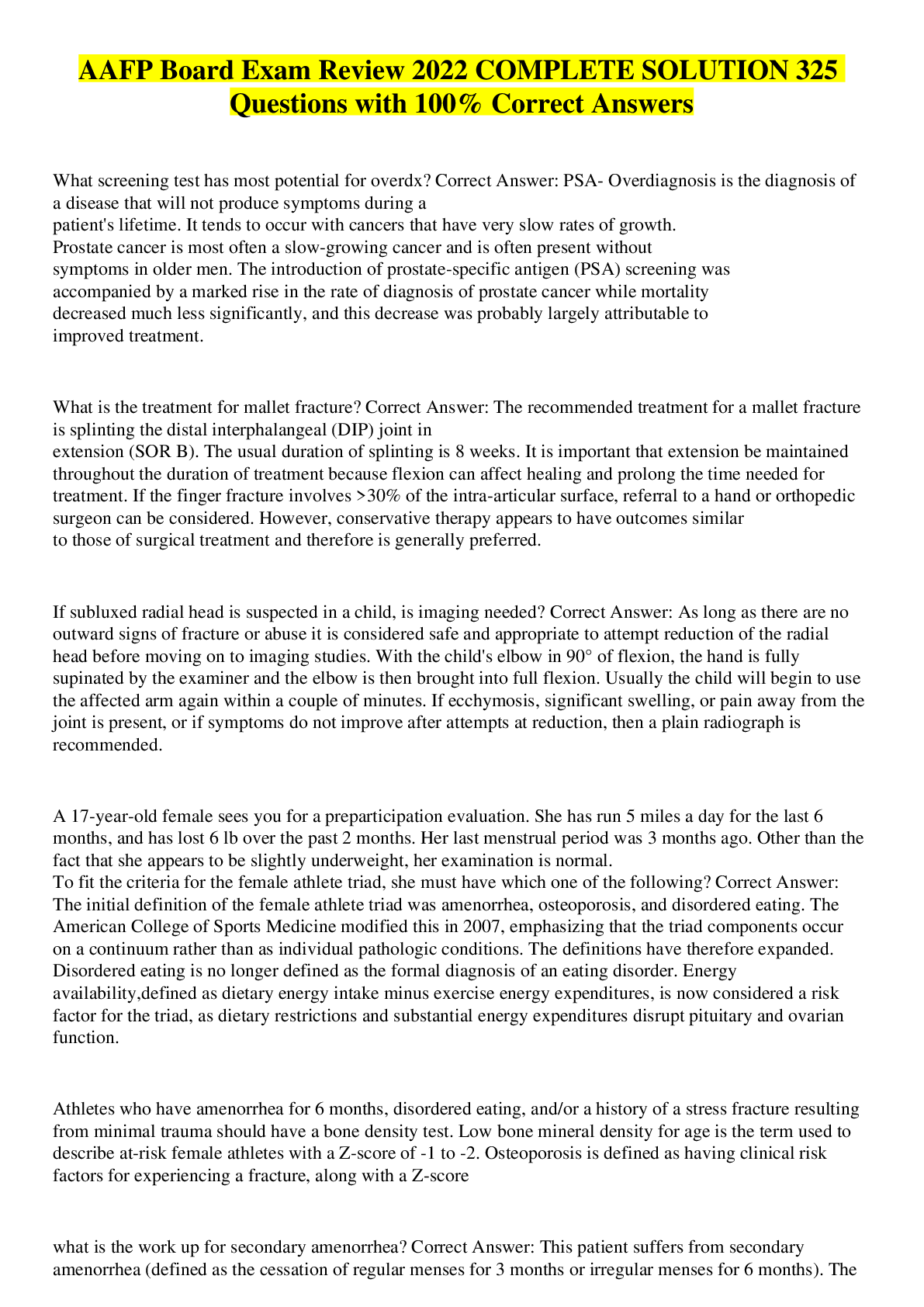 Medical Studies > ANSWERS AND COMMENTARIES > AAFP Board Exam Review 2022 COMPLETE SOLUTION 325 Questions with 100% Correct Answers