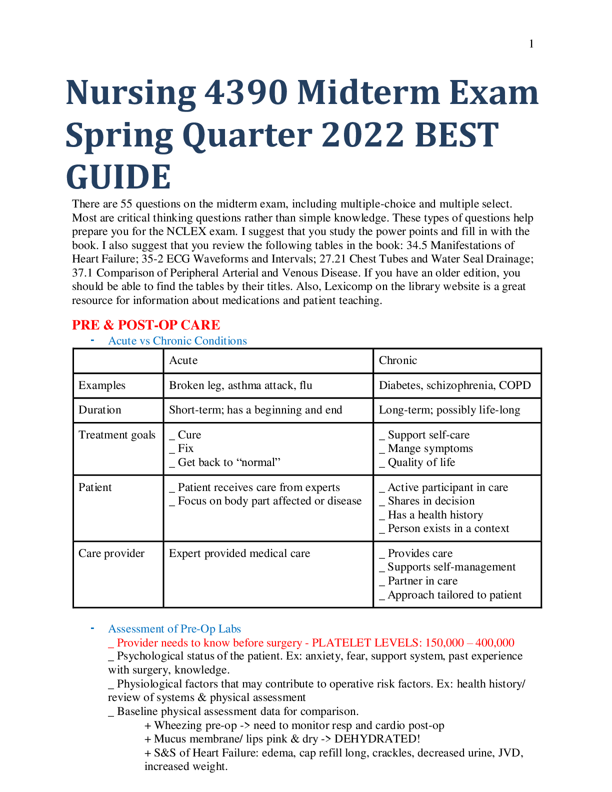 Health Care > ANSWERS AND COMMENTARIES > Nursing 4390; Study Guide Final Exam Winter Quarter 2022 GUARANTEED SUCCESS