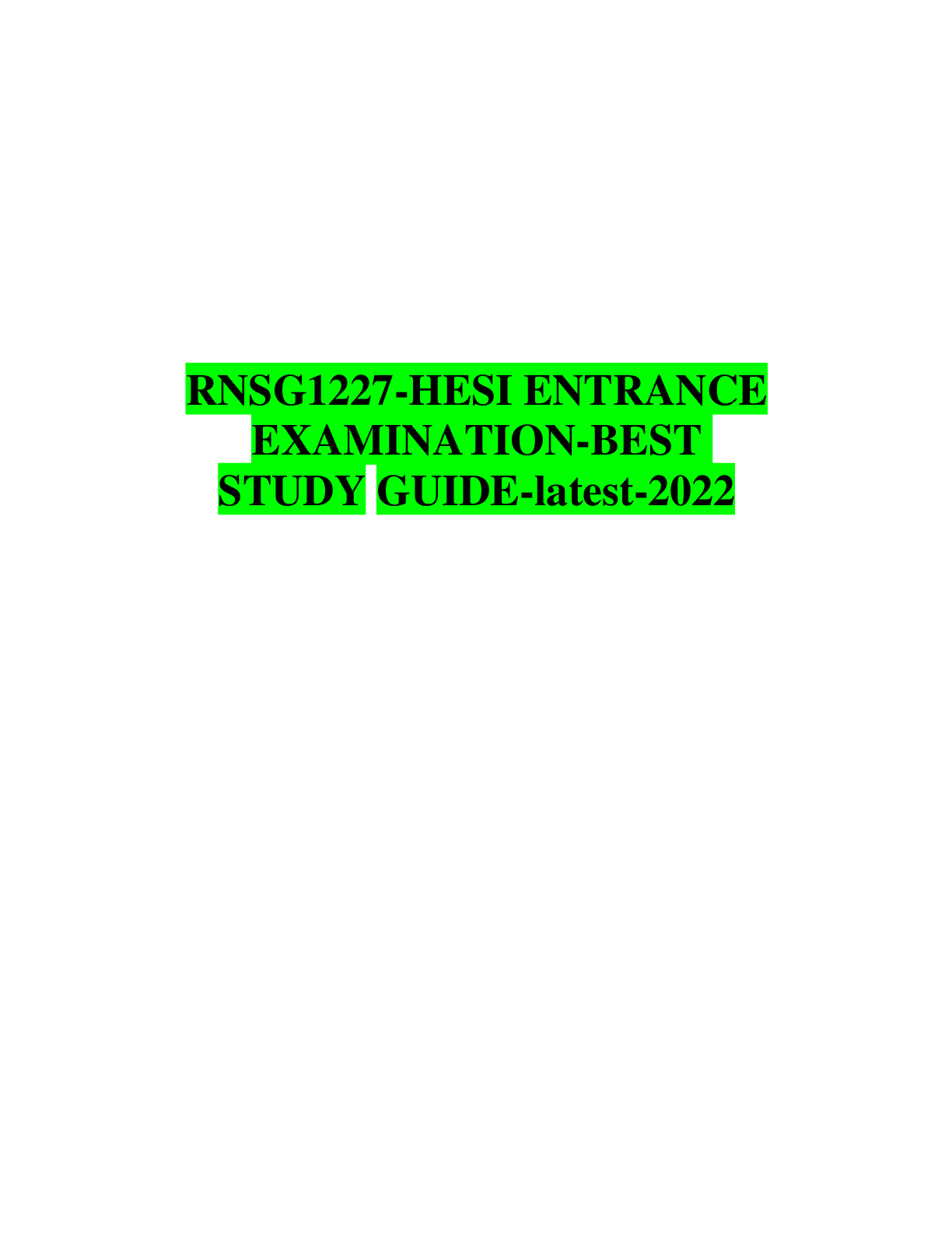 Health Care > ANSWERS AND COMMENTARIES > RNSG1227-HESI ENTRANCE EXAMINATION-BEST STUDY GUIDE-latest-2022