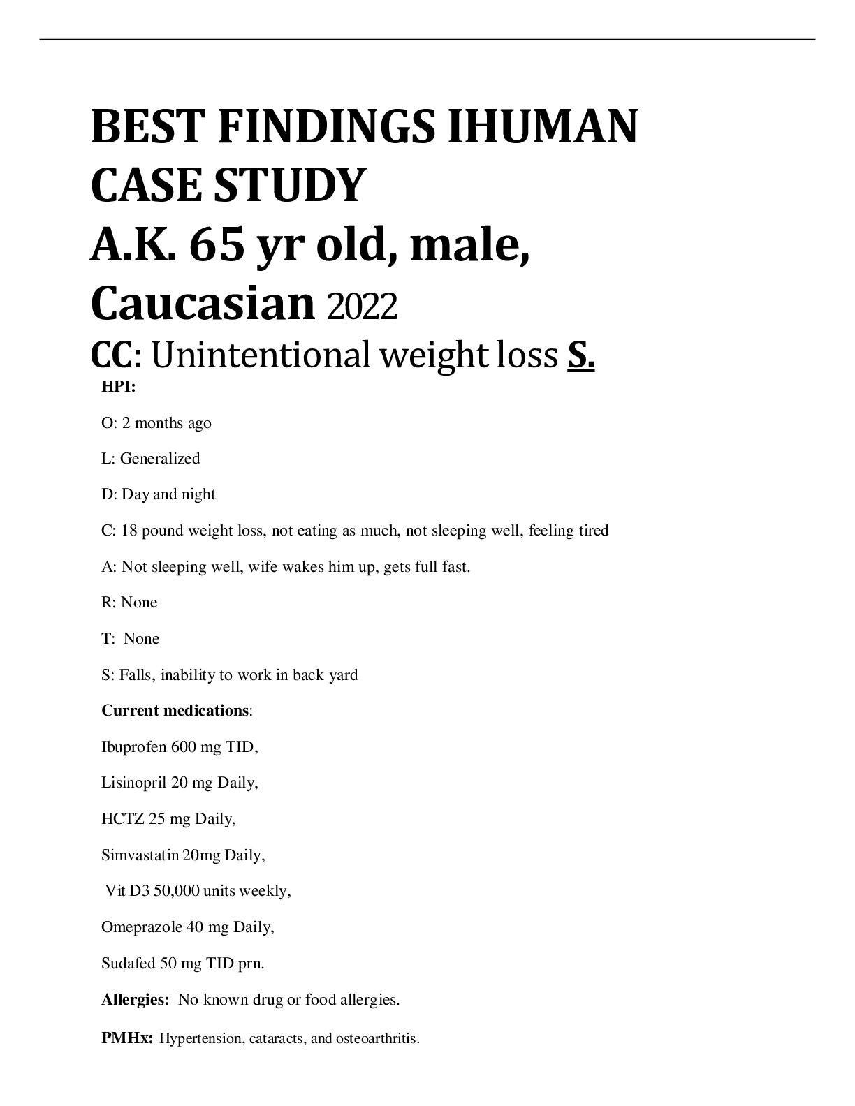 Health Care > ANSWERS AND COMMENTARIES > BEST FINDINGS IHUMAN CASE STUDY A.K. 65 yr old, male, Caucasian 2022