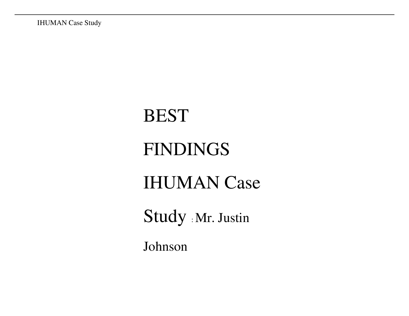 Health Care > ANSWERS AND COMMENTARIES > BEST FINDINGS IHUMAN Case Study : Mr. Justin Johnson
