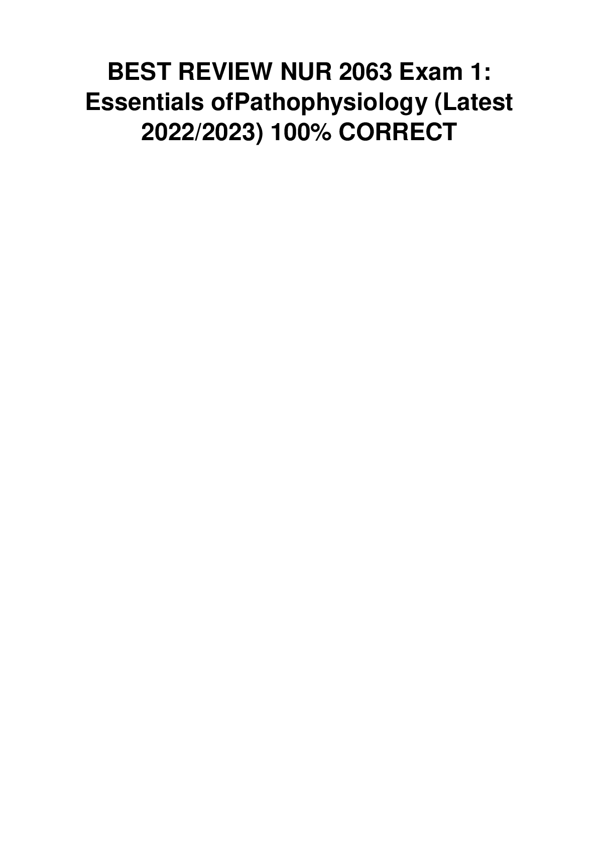 Health Care > ANSWERS AND COMMENTARIES > BEST REVIEW NUR 2063 Exam 1: Essentials of Pathophysiology (Latest 2022/2023) 100% CORRECT