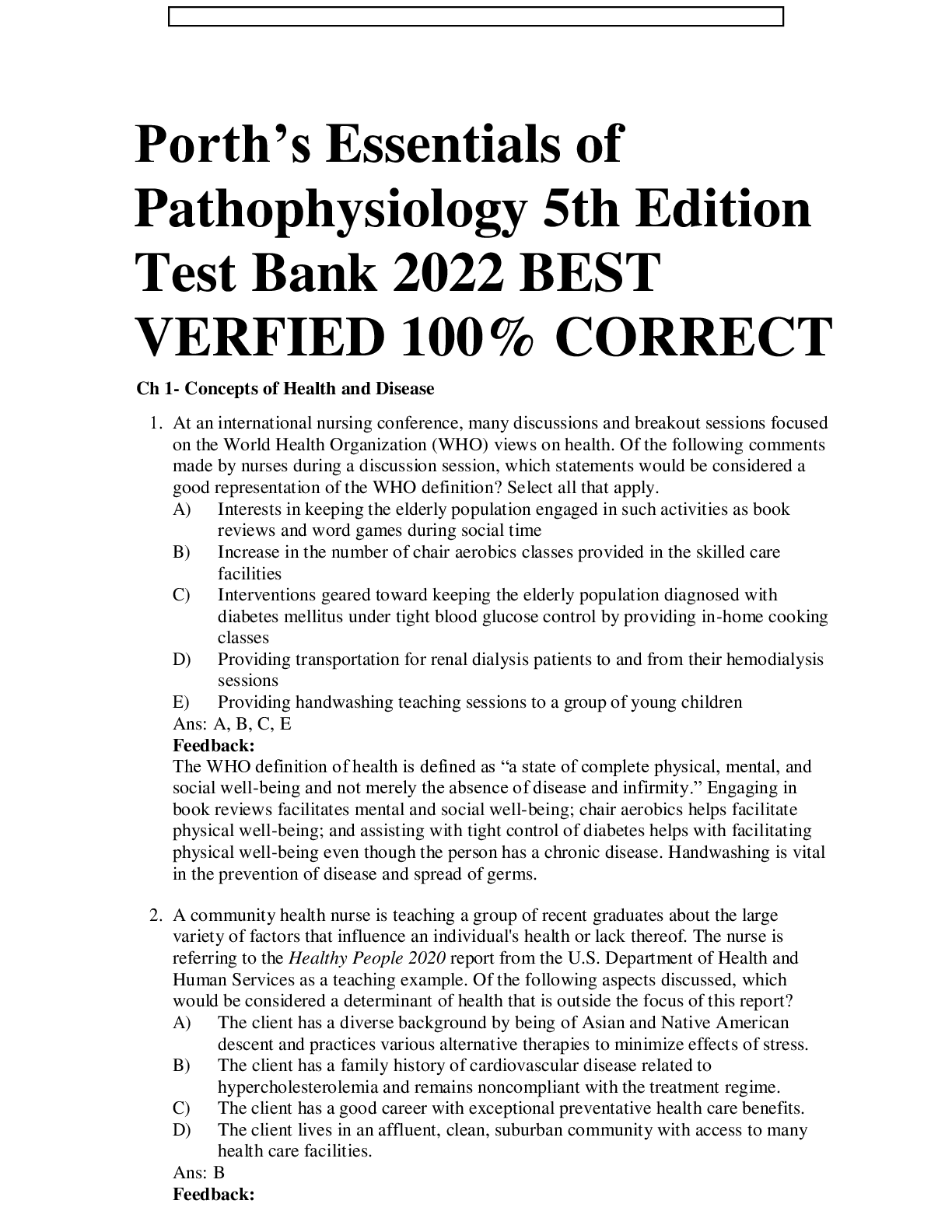 Health Care > ANSWERS AND COMMENTARIES > Porth’s Essentials of Pathophysiology 5th Edition Test Bank 2022 BEST VERFIED 100% CORRECT