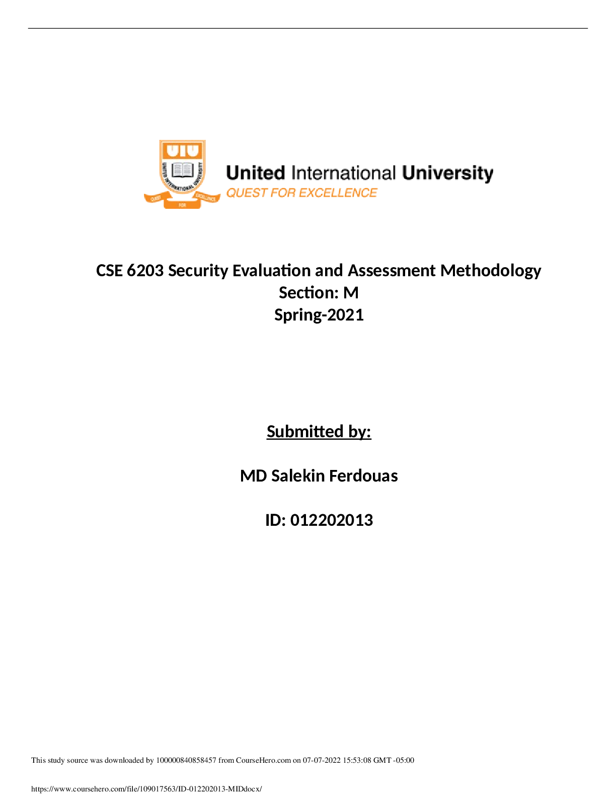 Sociology > ANSWERS AND COMMENTARIES > CSE 6203 Security Evaluation and Assessment Methodology