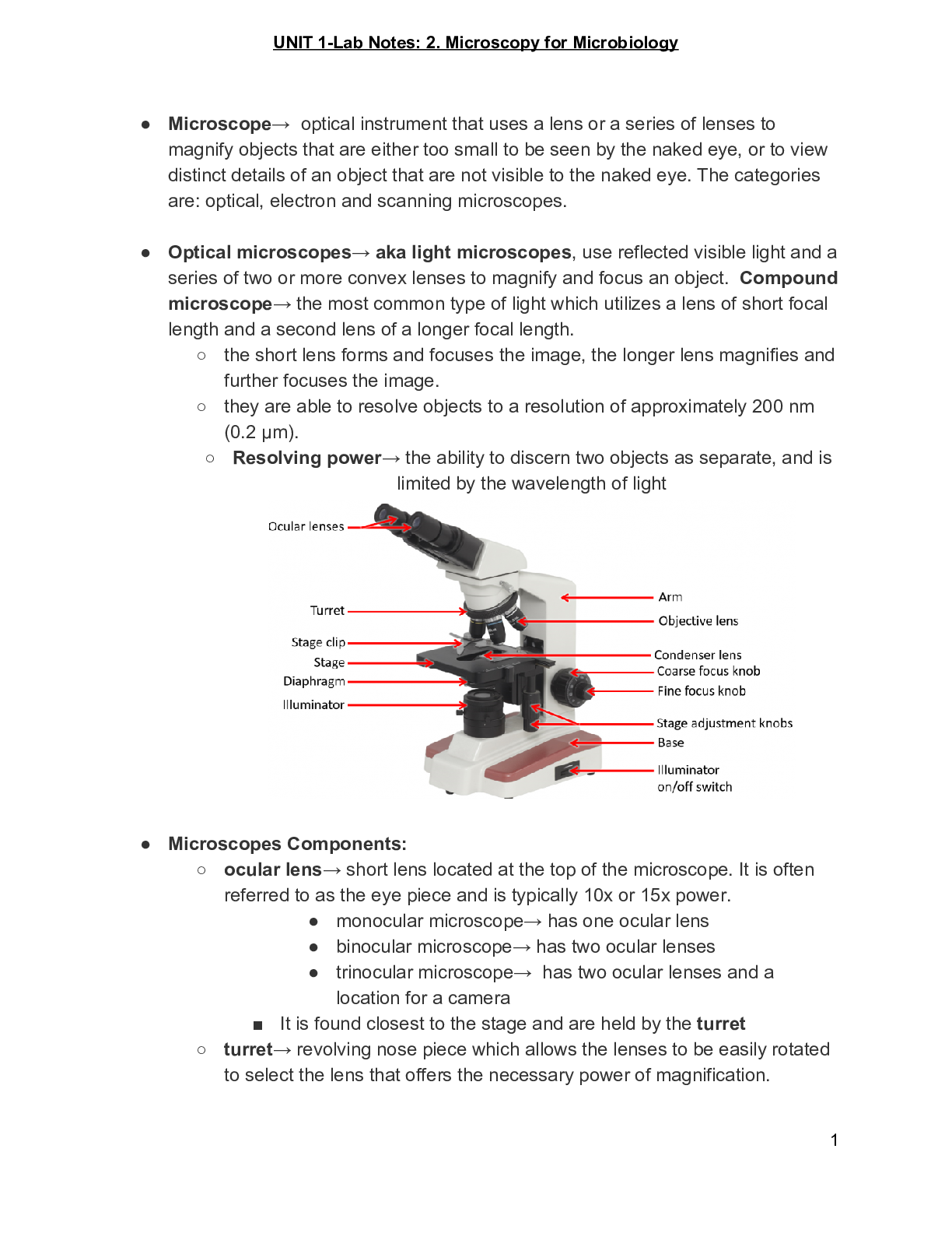 Micro Biology > ANSWERS AND COMMENTARIES > Lab Notes 2.Microscopy for Microbiology revised (All examinable latest 2022}.pdf