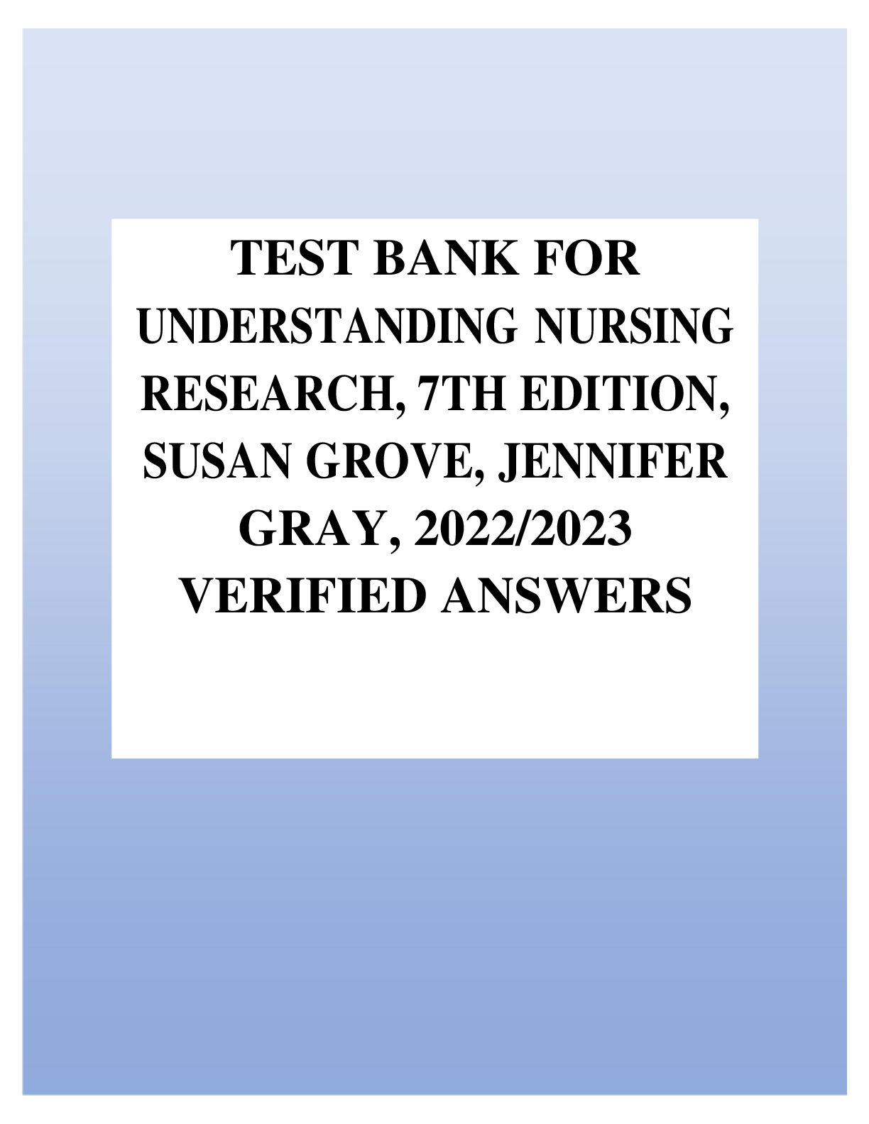 Health Care > ANSWERS AND COMMENTARIES > TEST BANK FOR UNDERSTANDING NURSING RESEARCH, 7TH EDITION, SUSAN GROVE, JENNIFER GRAY, 2022/2023 VERIFIED ANSWERS