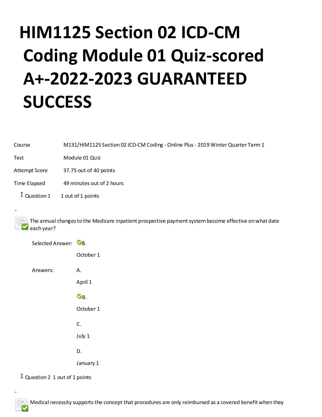 Health Care > ANSWERS AND COMMENTARIES > HIM1125 Section 02 ICD-CM Coding Module 01 Quiz-scored A+-2022-2023 GUARANTEED SUCCESS